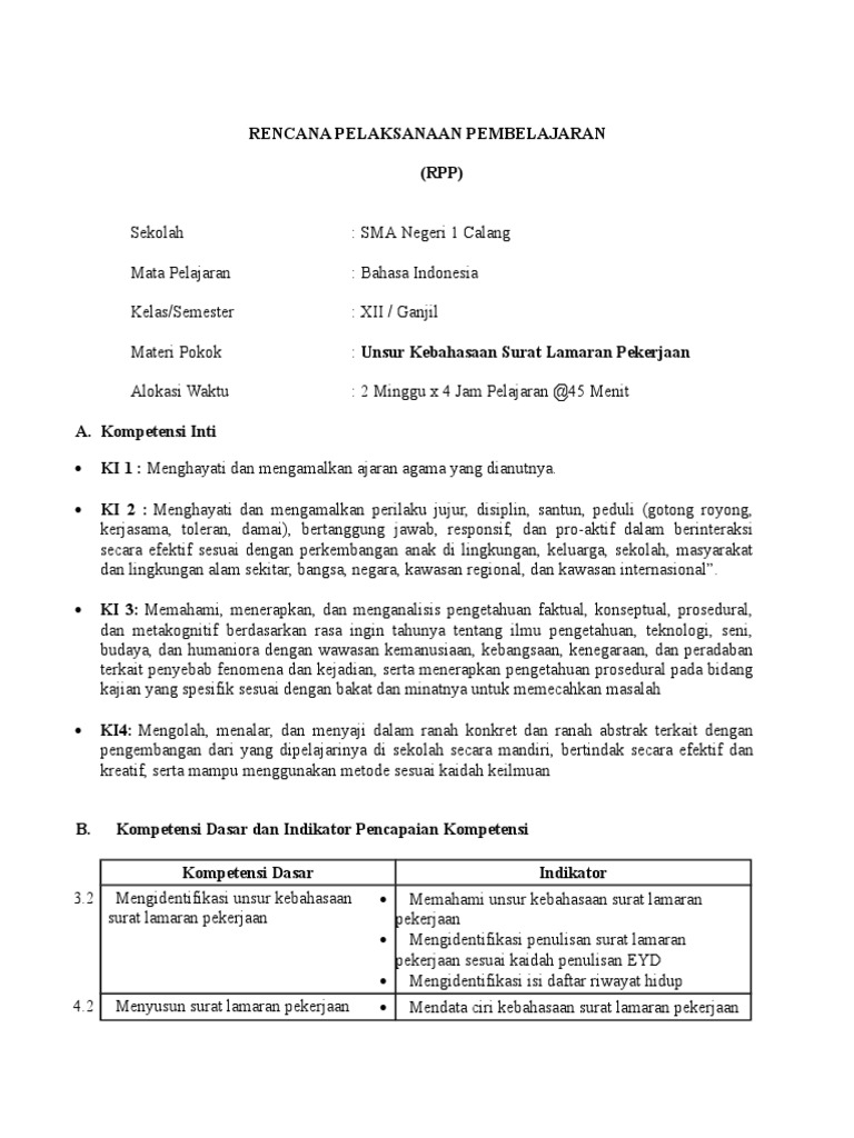 Unsur Unsur Surat Lamaran Pekerjaan - Rpp Kurikulum 2013 Revisi Bahasa Indonesia Wajib Kelas Xii Sma - Paragraf pembuka isi surat paragraf penutup salam penutup tanda tangan dan nama lengkap.